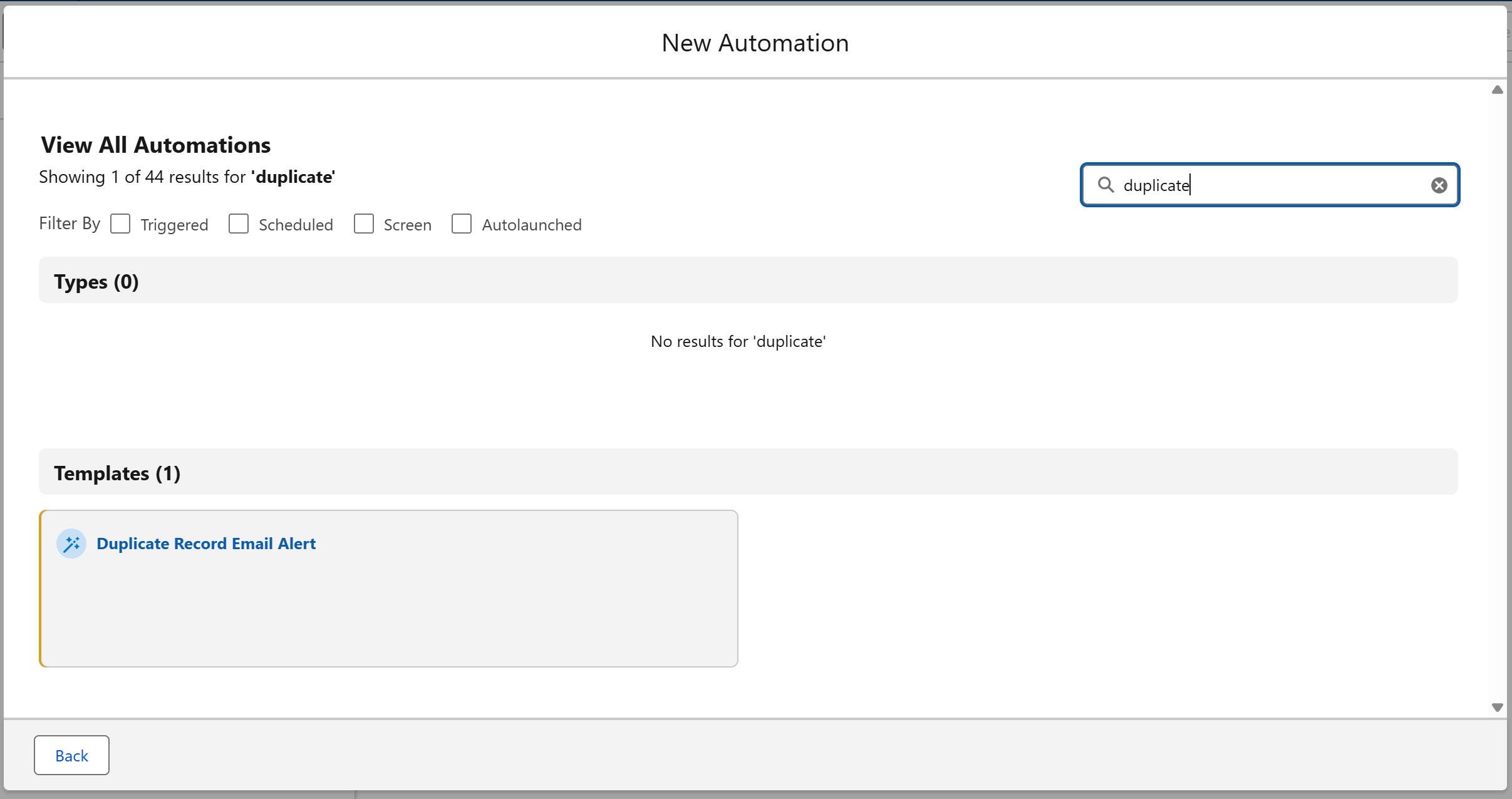 Initiate selected Salesforce flow when new duplicates are identified, for instance, to alert the user about the detection of new duplicates via email or Slack.