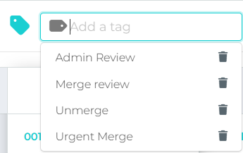 For example, the green merge tag appears when the system identifies records that are recommended to be merged.