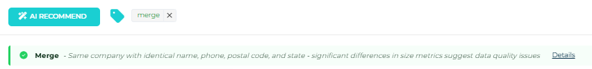Example: When AI tags a group as manual_merge, admins can use that tag as a filter to isolate and manually inspect those groups later.