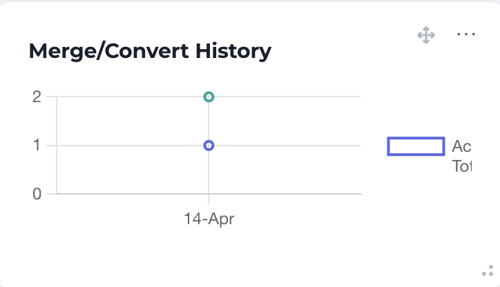 This component shows the number of merges/conversion actions taken by DataGroomr over the specified time period. The higher the value, the more actions taken. Customizing this component allows users to choose the datasets being monitored, the time period and whether or not to show a legend correlating the line to a dataset